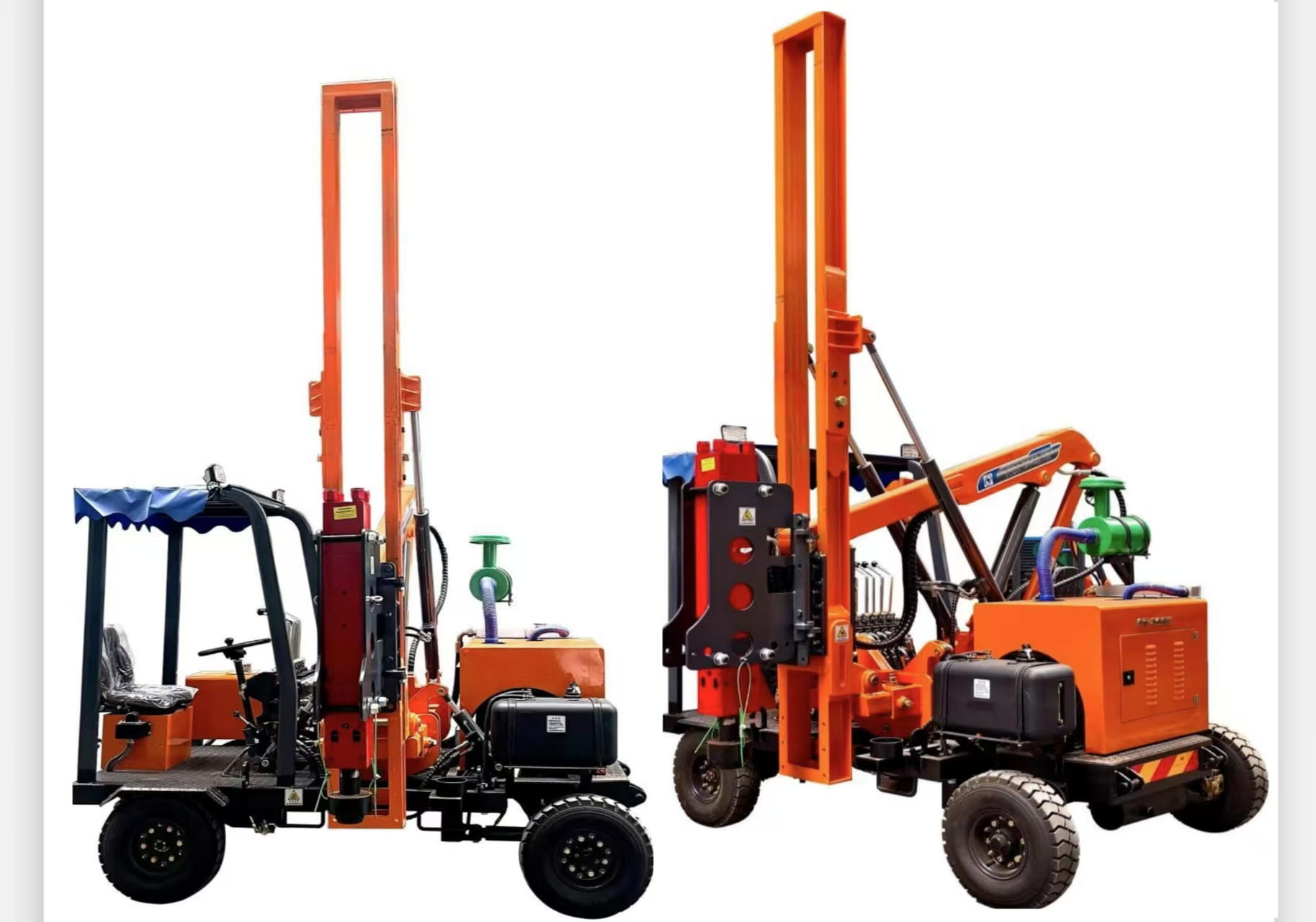 2.Tiang dan Penggerudian Serbaguna– Rel panduan menegak sehingga 3.95m menyokong cerucuk kurang daripada 3m; tukul hidraulik boleh digantikan dengan kepala berputar untuk menggerudi sehingga 2.2m.