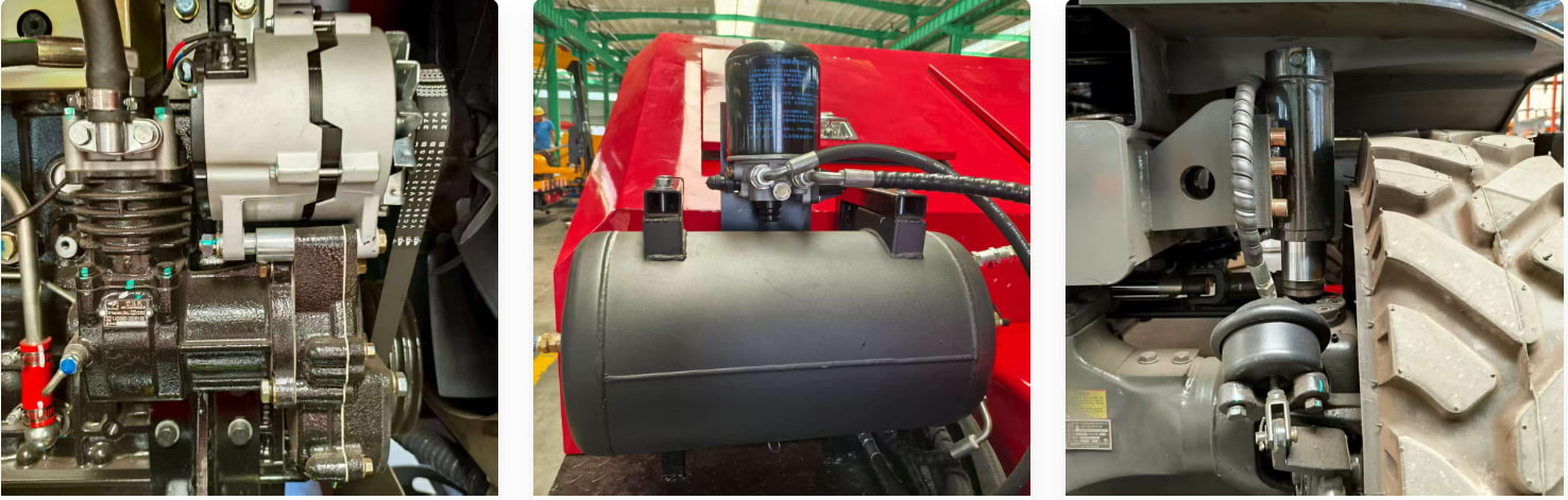 Pemampat udara kecil yang berasingan disediakan untuk memastikan bekalan udara yang stabil dan operasi sistem brek yang boleh dipercayai. Melengkapkan ini ialah tangki simpanan udara yang menyimpan udara termampat, menstabilkan tekanan udara semasa operasi peralatan, mengurangkan turun naik tekanan yang disebabkan oleh pemampat udara yang kerap berhenti mula, dan menyediakan sumber udara yang stabil untuk sistem pneumatik.